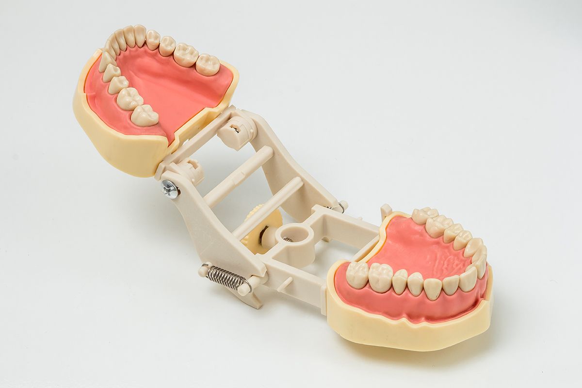 Запасные челюсти со сменными зубами, комплект 28 зубов. Европейский размер зубов. Артикулятор выполнен из пластика, съемный. Запасную челюсть можно использовать как отдельно на артикуляторе, так и в фантоме для обучения.