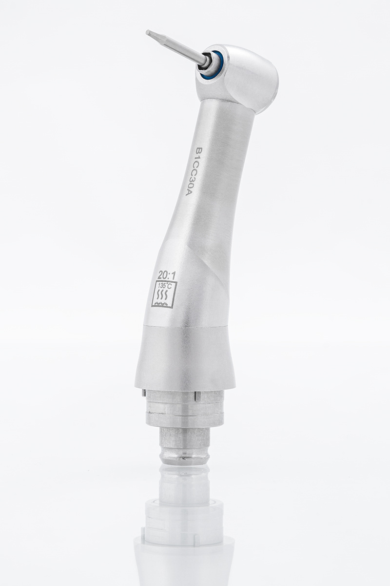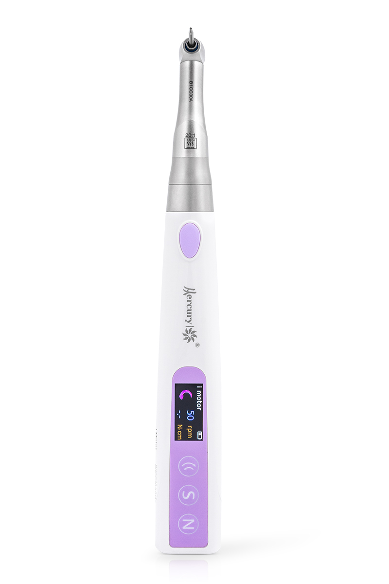 Динамометрический ключ Mercury - беспроводное устройство для фиксации абатмента на зубном импланте. В сочетании с угловым наконечником 20:1 развивает крутящий момент 10-50 Н·см и скорость 10-50 об/мин. Параметры скорости, момента и направление вращения регулируются отдельными кнопками. Функция калибровки позволяет избежать ошибок в работе.