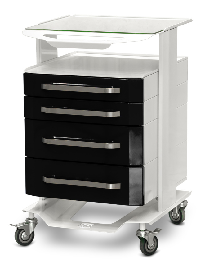 Ключевая особенность столика СИПС Н-01 — его широкая сфера применения. Он универсален. Форма его столешницы позволяет комфортно проводить множество стоматологических операций. Колесики столика снабжены тормозной системой, благодаря чему исключается вероятность того, что столик покатится сам собой.