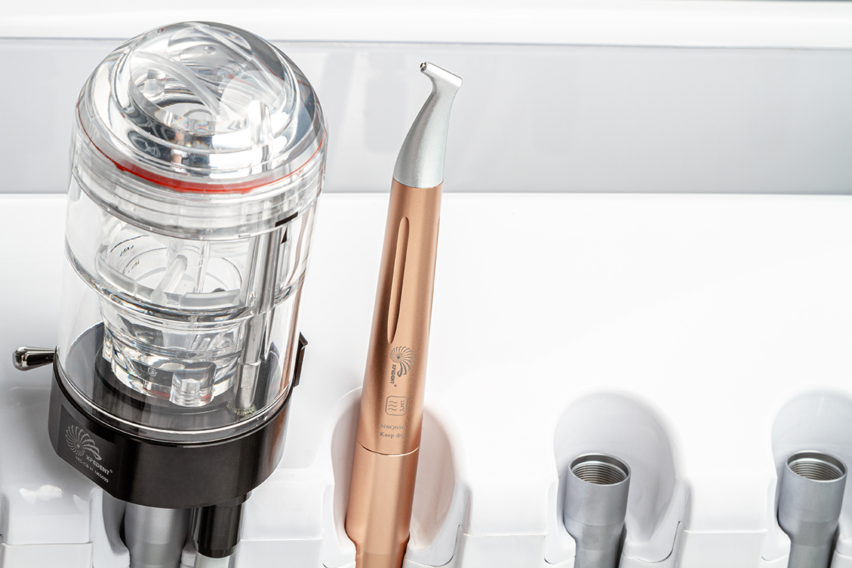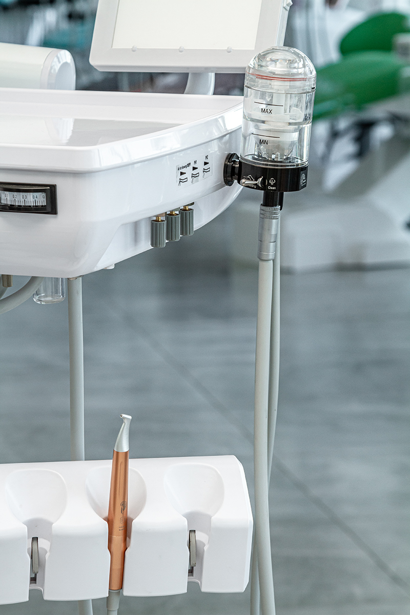 Отрегулируйте давление подачи внешнего стоматологического оборудования, чтобы получить давление подачи от 2,5 до 6 бар (250 Кпа-600кпа).