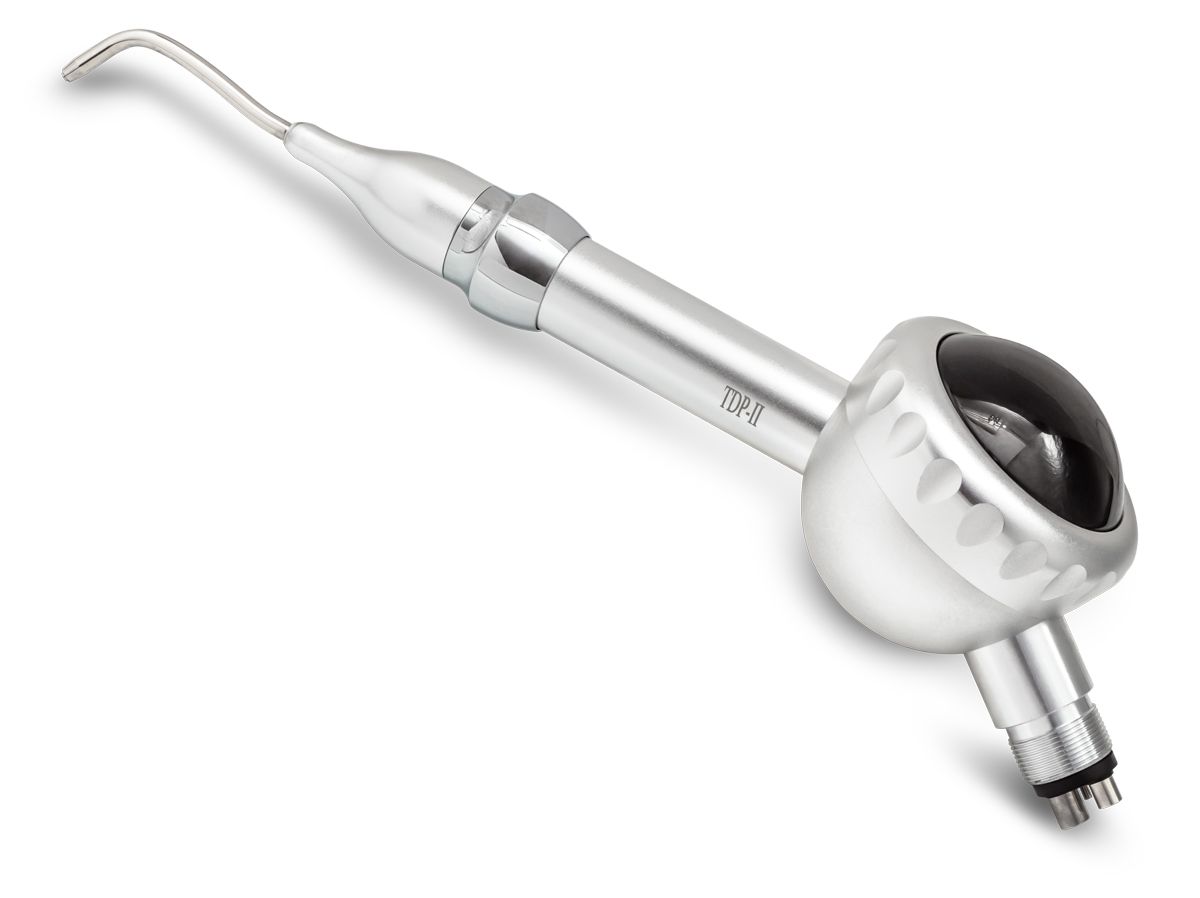 Насадка TDP-II отлично выполняет свою функцию в режиме непрерывной работы. Рабочее давление воздуха составляет 3,5-4,5 бар. При этом подача воды может достигать 80 мл/мин. Это гарантирует качественную работу и отличные очищающий эффект. Конструкция насадки дает возможность поворачивать её во время работы вплоть до 60 градусов для более комфортной очистки.