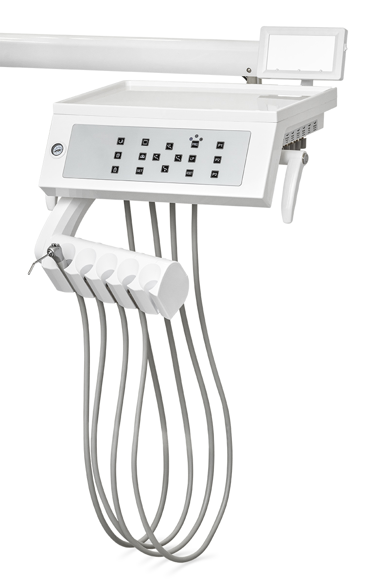 Блок врача предполагает нижнюю подачу инструментов, оснащенных четырьмя выходами М4 и пистолет для подачи воздушно-водяной смеси. Нижняя подача инструментов популярная у стоматологов, которые предпочитают не тянуться за инструментом через пациента и не бороться с силой натяжения пружины. Также блок врача оборудован специальным сенсорным блоком управления (креслом, гидроблоком и другими инструментами), оснащен манометром давления. Также имеется пантограф с пневмотормозом рабочего положения. Приятным преимуществом является наличие негатоскопа для просмотра рентгеновских снимков.