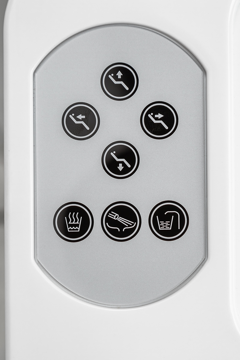 Педаль управления размещена на основании кресла: имеется возможность запрограммировать 3 положения, есть автовозврат в нижнее положение. Подголовник кресла регулируется по 3 осям, при необходимости, можно установить положение для детского приема.