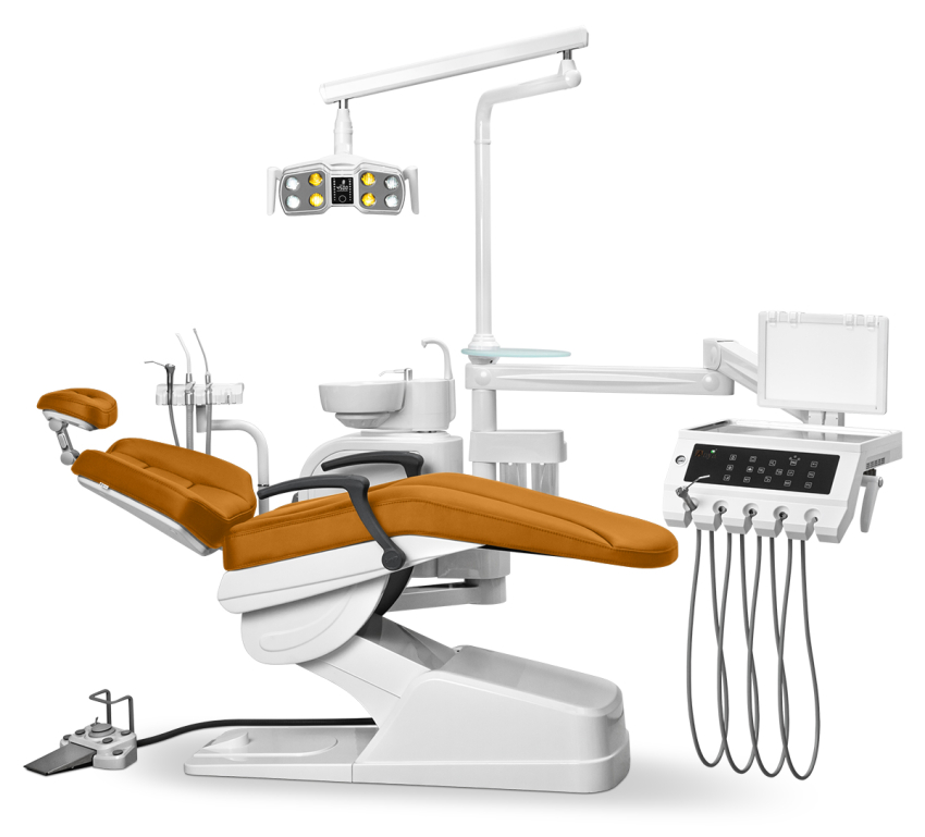 - Модуль ассистента на 4 инструмента с пылесосом и слюноотсосом (шланги с увеличенным просветом для использования с хирургической помпой).