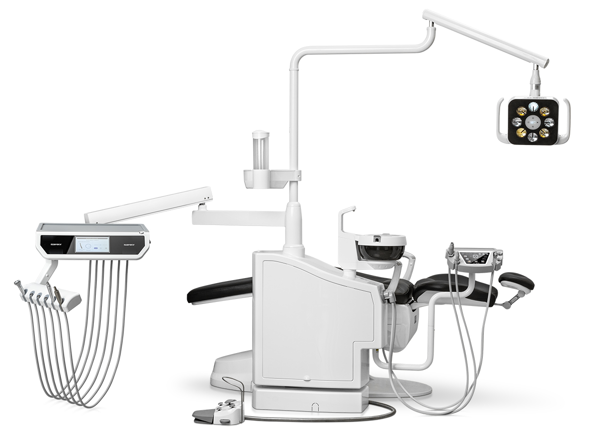 Управление теперь стало еще проще и нагляднее. Регулировка кресла вручную или выбор из 9 программируемых положений, управление инструментами и подробная информация о каждом, которая всплывает на экране, как только вы берете любой из них руки. Инновационность и комфортная работа с новым блоком врача на 6 инструментов.Идеальный обзор