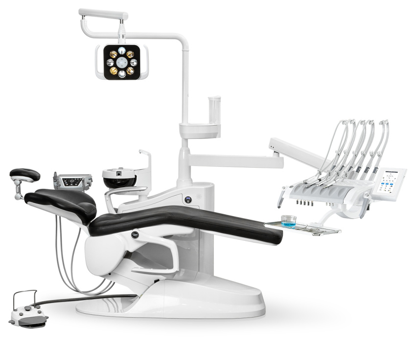 Управление теперь стало еще проще и нагляднее. Регулировка кресла вручную или выбор из 9 программируемых положений, управление инструментами и подробная информация о каждом, которая всплывает на экране, как только вы берете любой из них руки. Инновационность и комфортная работа с новым блоком врача на 6 инструментов.Идеальный обзор
