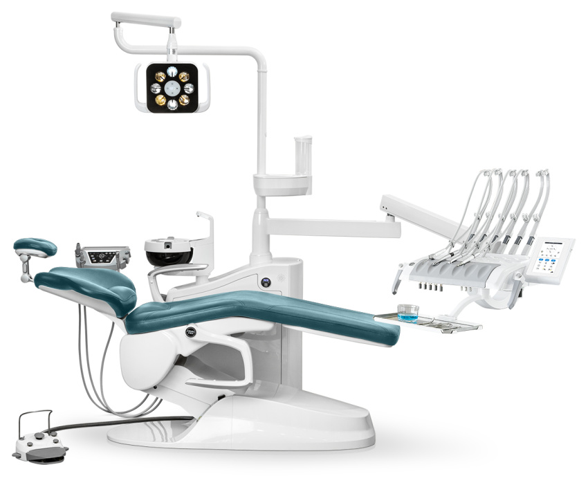 Управление теперь стало еще проще и нагляднее. Регулировка кресла вручную или выбор из 9 программируемых положений, управление инструментами и подробная информация о каждом, которая всплывает на экране, как только вы берете любой из них руки. Инновационность и комфортная работа с новым блоком врача на 6 инструментов.Идеальный обзор