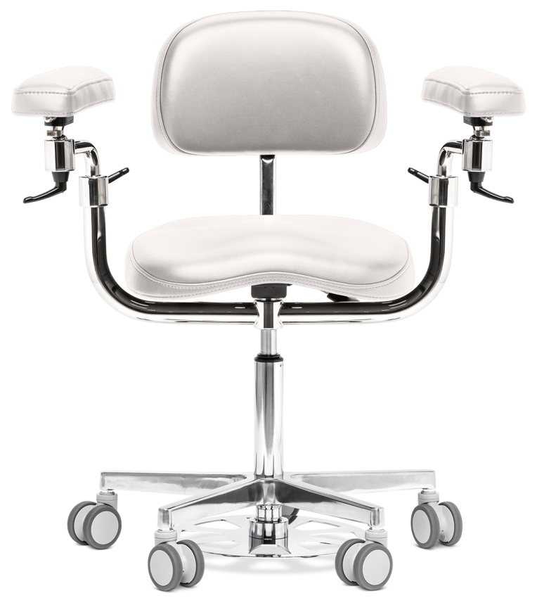 Механизм локтевого упора используется во всей линейке Elite позволяет комфортно настроить положение для человека с любой комплекцией, что увеличивает его универсальность, так как вы можете вести общую практику и работать за микроскопом.