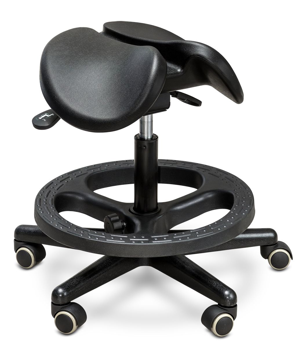 Стул-седло сбережет вашу спину от высокой нагрузки и не даст затрудняться кровотоку при долгом сидении. Для большего удобства вы можете изменять настройки ширины частей сиденья. Также оно может наклоняться, тем самым сохраняя вашу осанку в полном порядке при наклонах вперед.
