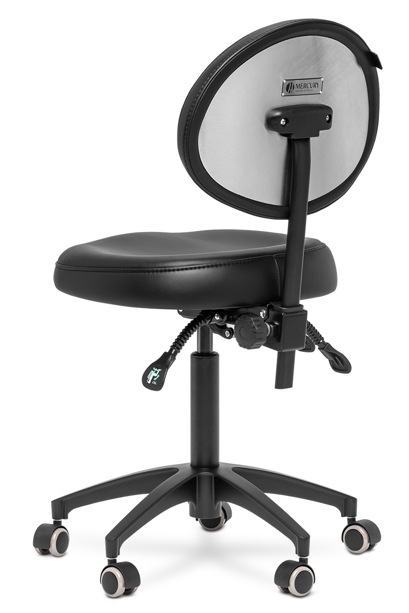 Ещё одно достоинства стула врача Mercury — конструкция колес. Дополнительная прорезиненная часть колесиков позволяет бесшумно перекатывать стул. Колесики не скрипят и без затруднений поворачиваются в нужную сторону. Антибактериальное покрытие гарантирует безопасность и стерильностью использования.