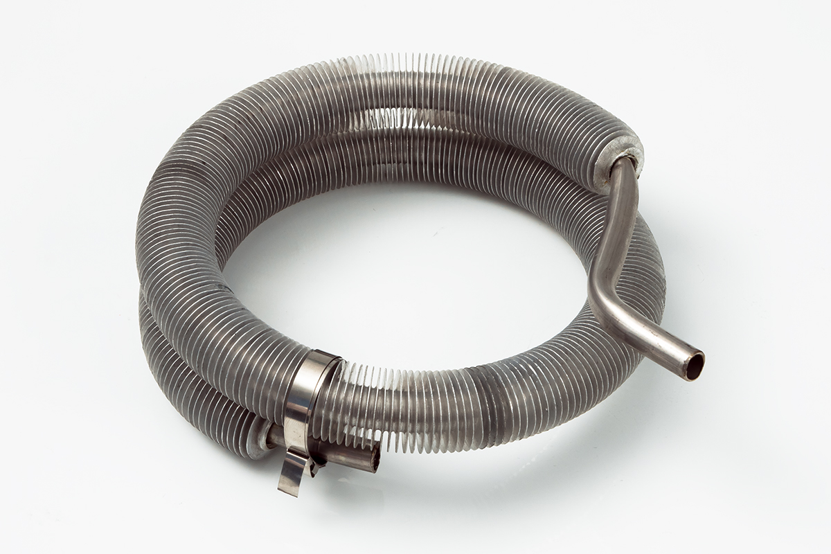 Проводит пар, который охлаждается за счет вращения лопастей вентилятора и превращается в дистиллированную воду. Выполнен из алюминия. Внешний диаметр 25 мм, внутренний 10 мм, длина 73 см.