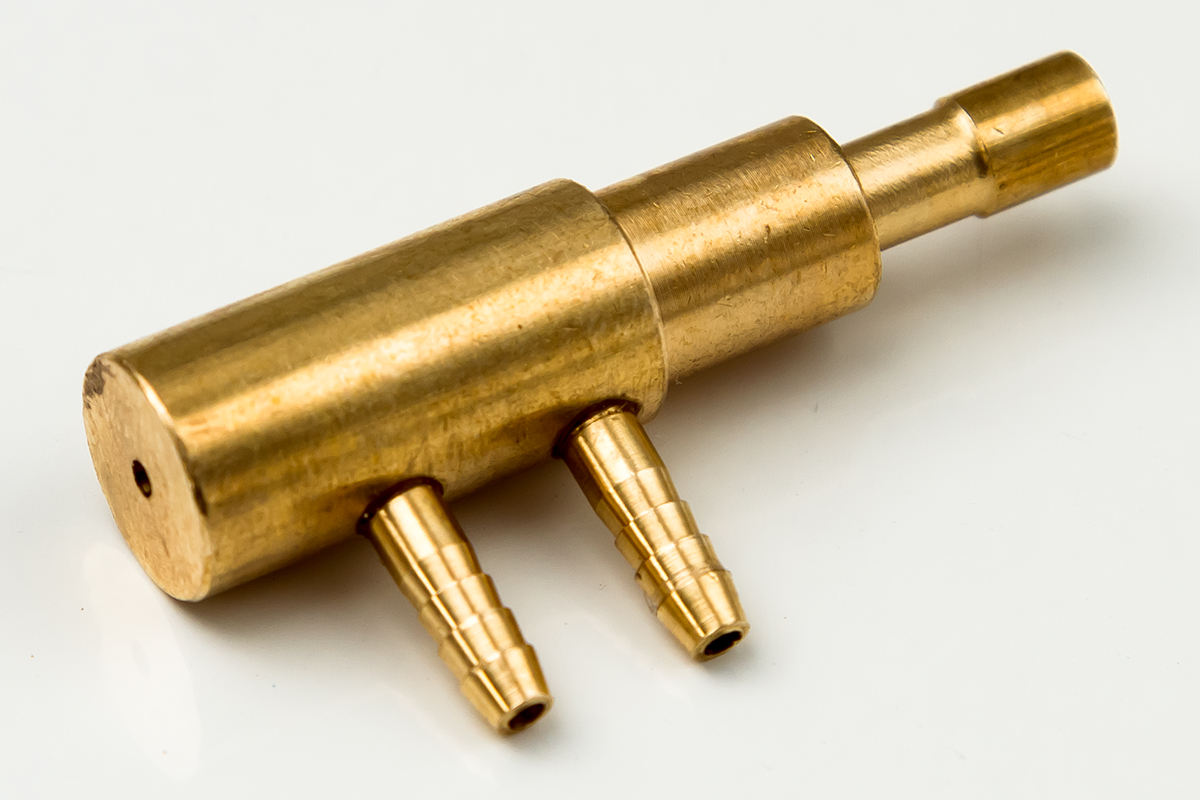 Клапан из латунного сплава, подает воздух на клапан управления. Находится в держателе для инструментов столика врача.