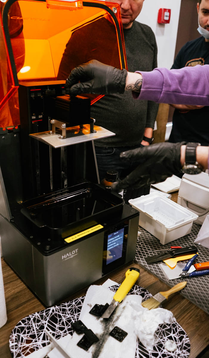 11-12.12 состоялся практический курс по фотополимерной 3D печати в Novgodent!Изучили и освоили тонкости 3D печати на стоматологических принтерах CREALITY HALOT-SKY и PHROZEN SONIC