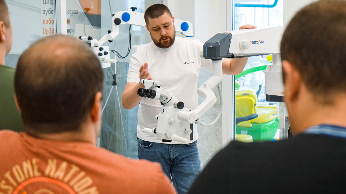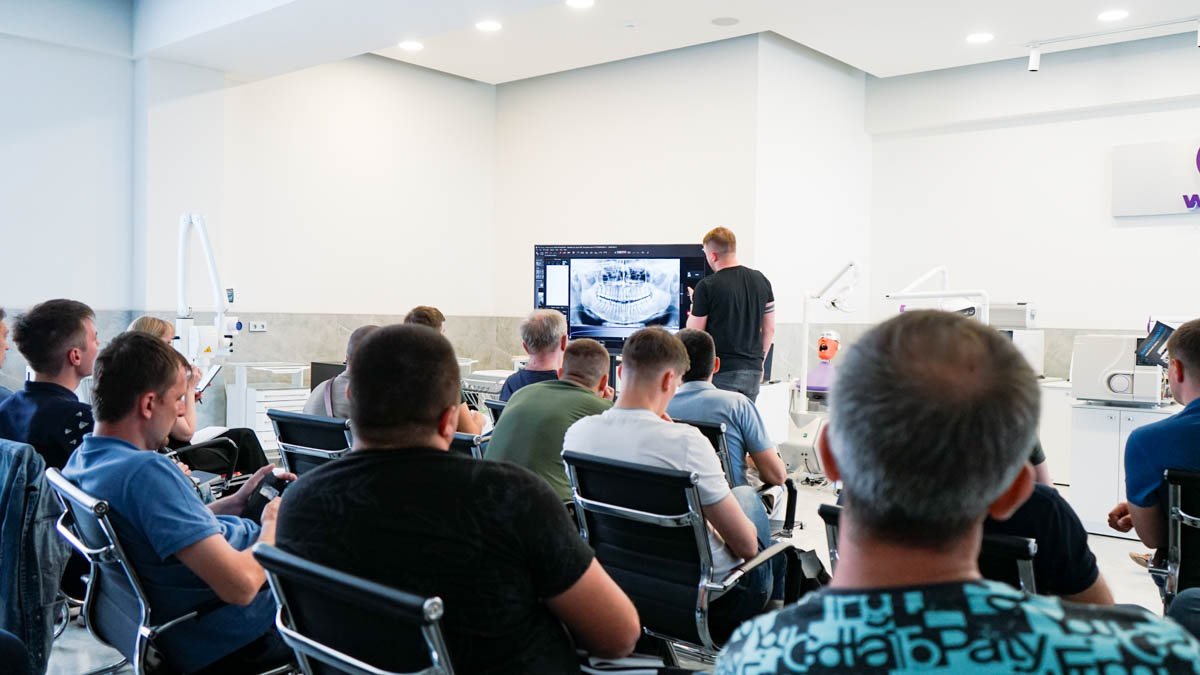 Наши гости с интересом погрузились в мир цифровой стоматологии. Егор Михайловский доступным и простым языком рассказал о принципах стоматологии будущего, а также показал, с какими трудностями можно столкнуться на практике.